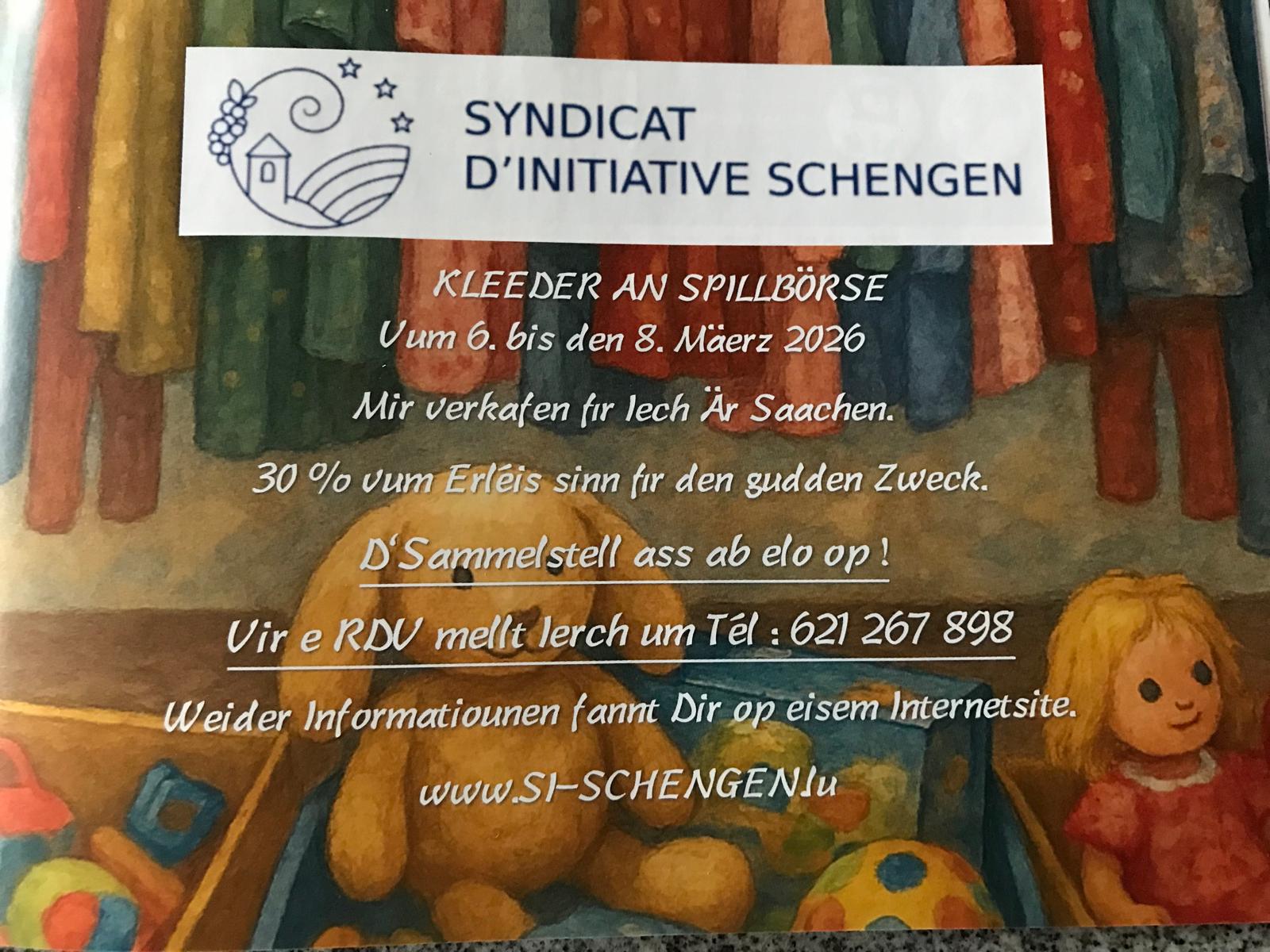 SI Schengen organisiert zum 2. Mal eine Kleider umd Spielbörse. Für mehr Informationen, beachten Sie bitte unseren Flyer Boerse Detail 26